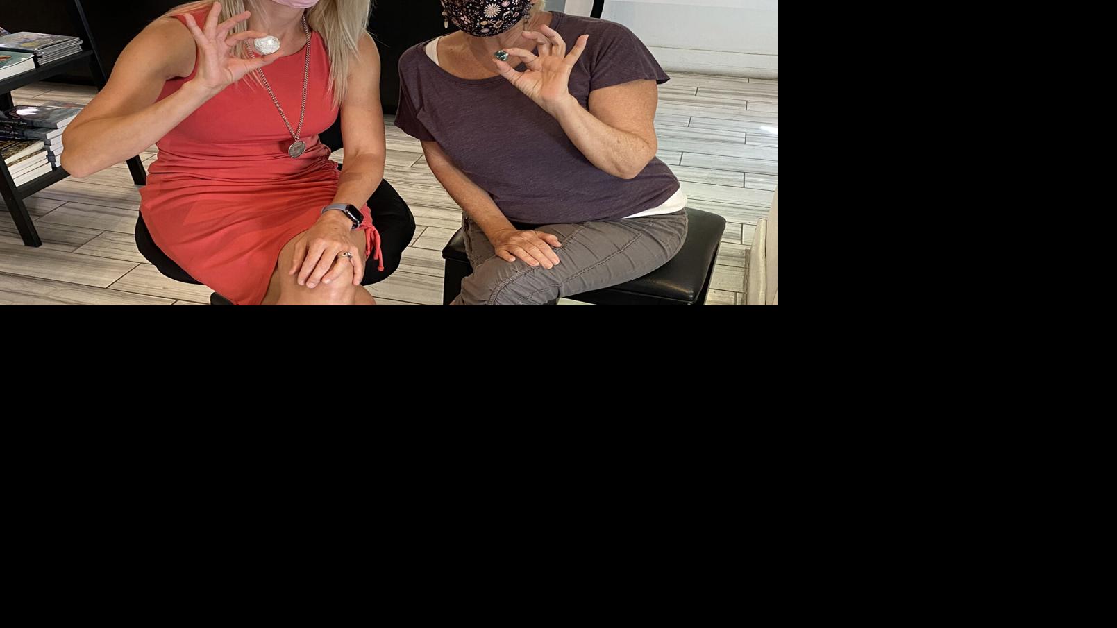 Mel Fisher’s Treasures Duval Street shop manager Karolina Calderwood, left, and shipwreck historian Carol Tedesco, right, met up last week to examine and photograph two notable artifacts previously recovered from the Nuestra Senora de Atocha shipwreck, which represent both Old World and New World cultures: an unusual silver ‘piece of eight’ treasure coin on which small stars were used to replace the usual field of fleur-de-lys representing New Burgundy, and a 43.72ct piece of jadeite — a stone prized among the Olmec, Maya, Aztec, Toltec and other pre-Columbian New World inhabitants.